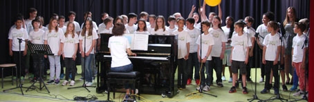 es fröhlich mit zwei schön gesungenen Disney-Liedern weiter und wurde mitreißend und rührend mit einem Geschwisterduo an Piano und Geige. Mit einem fabulösen Auftritt des berühmt-berüchtigten Lehrerchors und dem Lied „We are the World“ klang dieser fantastische Abend, an dem viel gelacht, gesungen und geplaudert wurde, würdevoll aus.