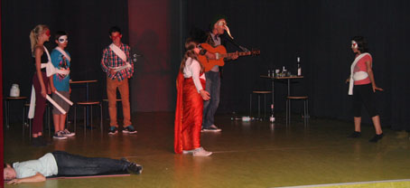 Am 27. Juni 2014 präsentierte die Theater AG auf der Bühne vor der Sitzmulde ihr Stück „Happy End gesucht“.