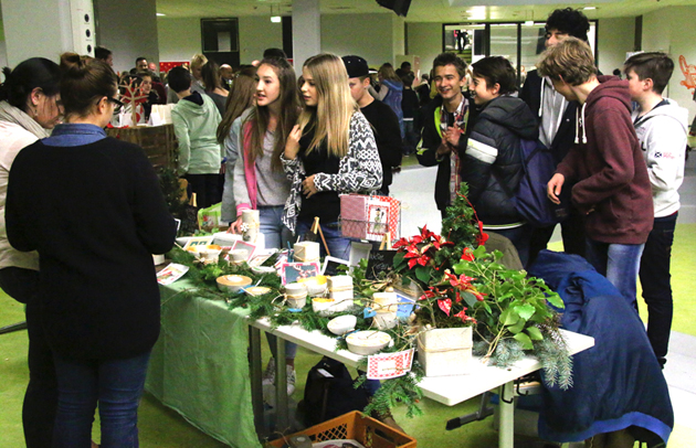 Die Flure waren voll und vor den 40 Ständen drängten sich die interessierten Besucherinnen und Besucher. Immer wieder setzten die handwerklich meisterhaften Leistungen, die zum Verkauf feilgeboten wurden, die Gäste in Erstaunen. Da hat wohl so mancher Erwachsene voller Respekt zwei Mal hingeschaut und die Ideen und Ausführungen unsere Schülerinnen und Schüler bewundert. Alle Achtung!