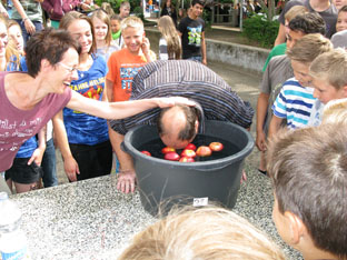 Die ganze Schule sollte sich auf dem Förderstufenhof versammeln. Musik, lautes Geschrei und Lachen, das war das Einzige, was man hören konnte um 9:30. Die Abschlussklassen, die etwas in der Unterzahl waren, hatten sich paar schöne Spiele für die jüngeren Schüler ausgedacht. Die Lehrer wurden ebenfalls nicht verschont, denn sie durften auch mal in den Apfel beißen. Am Ende der vierten Stunde war auch schon wieder alles vorbei und jeder durfte wieder zurück in seinem Unterricht, natürlich reichlich verziert, da sich die Abgänger, wie jedes Jahr, den Spaß erlaubten, uns anzumalen. Als das Event zu Ende war, haben sich fast alle Abschlussklassen aufgerafft, um den Förderstufenhof wieder „blitzblank“ zu putzen. Wir freuen uns auf das nächste Jahr!