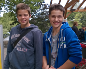 Wir kauften jeder eine Rundfahrt und stiegen ins Boot ein. Im Wasser schwammen viele süße Fische, über die sich Alex und Lalo aufregten. Kurz danach war die Rundfahrt leider schon zu Ende. Um 12:00 Uhr trafen wir uns alle, um gleich danach auch wieder abzuhauen. Da wir Kohldampf hatten und die Schlange so lang war, gingen wir in ein überteuertes Restaurant & Café, um Pommes mit Currywurst zu essen. Da wir es dort so langweilig fanden und wir nichts mit Experimenten anfangen konnten, machten wir uns wieder auf den Weg nach Alsbach.
