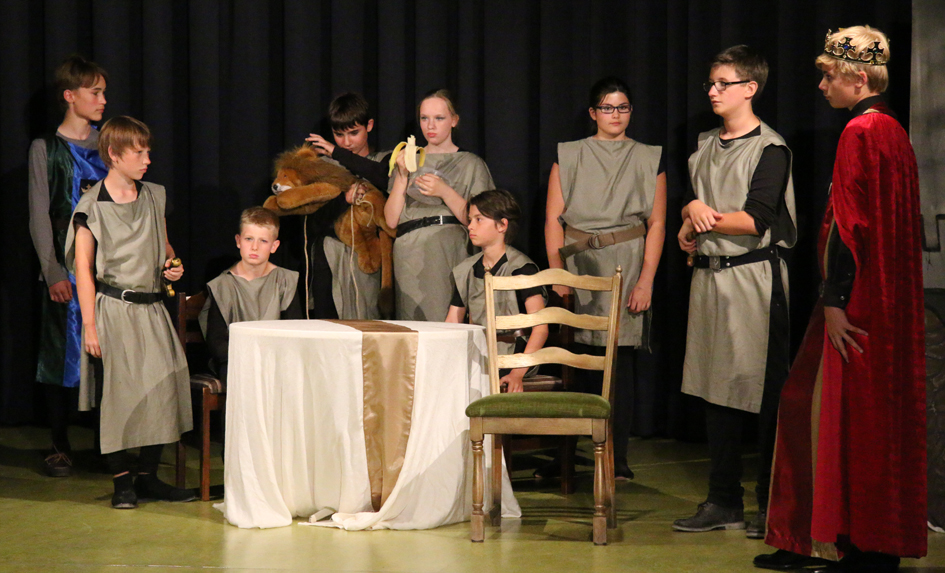 Die Theater AG präsentierte König Artus, die Geschichte über die sagenumwobenen Abenteuer des König Artus und der Ritter der Tafelrunde. Die Schülerinnen und Schüler präsentierten das Stück überzeugend gespielt und zogen das zahlreiche Publikum in ihren Bann. Die herausragende schauspielerische Leistung wurde durch die Unterstützung durch die Regie, bei den Kostümen, den Kulissen, der Ton- und Lichttechnik (die erst wenige Wochen vor dem Stück durch den Förderverein ermöglicht wurde) ins perfekte Ambiente gerückt.