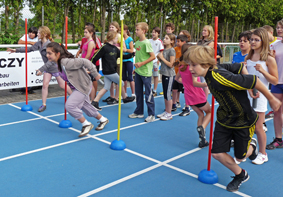 Die 5. und 6. Klassen traten auf der neuen Kunststoffbahn in einem 16x50m Staffel-Lauf gegeneinander an.