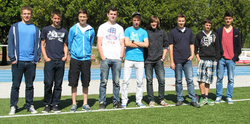 Zum vierten Mal in Folge erreichten die Melibokusschüler beim diesjährigen Kreis- und Stadtentscheid Leichtathletik im Wettkampfprogramm „Jugend trainiert für Olympia“ am 04. Mai 2011 im Christian-Stock-Stadion in Seeheim-Jugenheim einen ersten Platz. Sowohl die Mannschaften Jungen der Melibokusschule-Alsbach, im Wettkampf III (Jahrgang 96-98), als auch im Wettkampf II (Jahrgang 94-96) behaupteten sich als Sieger aller beteiligten Schulen. In einem spannungsreichen Wettkampf in sieben Disziplinen, konnten die 21 Schüler der Melibokusschule-Alsbach, betreut von Thomas Schorr und Jürgen Wolf jeweils die Mehrzahl der Einzelsiege vor dem Schuldorf Bergstraße erzielen und sich damit für den Regionalentscheid am 25. Mai 2011 an gleicher Stelle qualifizieren. Zu der erfolgreichen Mannschaft Wk III gehörten Paul Mohrmann, Philipp Georgi, Tim Gerbig, Tom Schäfer, Nicola Schott, Philipp Götz, Louis Blumenschein, Cedric Beckert, Luca Högy, es fehlt Dominik Türsan (oberes Bild, von links nach rechts). Für die Mannschaft Wk II waren Paul Zank, Tobias Götz, Alexander Kniesz, Oliver Schweickert, Max Ganser, Daniel Sossou, Lars Metzger, Jonas Möller, Markus Keller, Cristian Ballweg, Angelo Amato (unteres Bild, von links nach rechts) am Erfolg beteiligt.