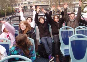 We met at school and then we walked together to the train station and took a train to London. There we changed to the Underground and at Victoria Station we started our “Original London Sightseeing Tour“ with one of the famous open red double-decker buses which took us straight to “Madame Tussauds”. It was very windy and cold.
