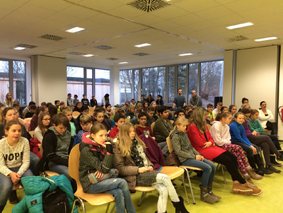Die Schülerinnen und Schüler der 6. Klassen hörten interessiert ihren Mitschülerinnen und ihrem Mitschüler zu. Alle Vorlesenden hatten spannende Stellen aus ihren Büchern ausgewählt.