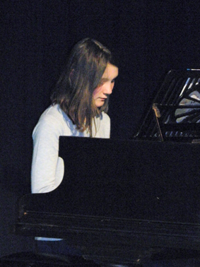 Danach folgten die jüngsten Solisten: Lily Bluebell Flowers am Flügel, mit dem Stück Red River Valley, einem traditionellem Lied aus Nordamerika. Sie spielt seit 4 ½ Jahren Klavier.