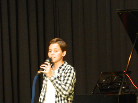 Peter Paletta aus der 6. Klasse sang mit seiner klaren Knabenstimme das Lied „We are the world“ von Michael Jackson &Lionel Richie. Seine Gesangsstunden bei Jose´ Wolf wurden mit viel Beifall belohnt.