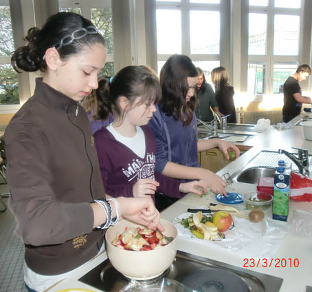 Küche: Zum Thema Früchte im Biologieunterricht wird natürlich ein Fruchtquark gekocht!:-)