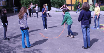 . ergänzt. Das Angebot richtet sich mit seinen zahlreichen Spielgeräten vor allem an die Schülerinnen und Schüler der Klassenstufen 5 und 6, wobei die Spielekiste natürlich auch von allen anderen Klassen ausgeliehen werden kann. Zudem stehen nicht die Ballsportarten im Mittelpunkt des Sortiments, sondern solche Spielgeräte, die andere, weniger häufig beanspruchte Bewegungsabläufe fördern und beispielsweise das Gleichgewicht oder die Körperspannung der Kinder schulen.