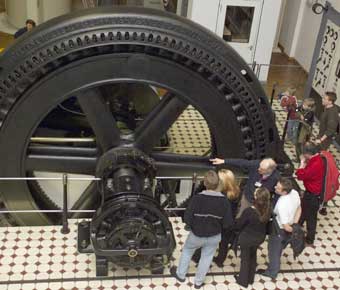 Im Museum angekommen durften wir unser Gepäck verstauen. Und schon ging unsere Führung los! Wir sahen wie die Familien von früher gelebt haben. Außerdem sahen wir wie die Arbeitszustände früher waren, welche Risiken sie ausgesetzt waren. Auch ein kleines Klassenzimmer von früher hatten sie getreu nachgebaut. Es gab ein rieses „Laufrad“, das die Menschen von damals als „Flaschenzug“ genutzt haben. Unten im Erdgeschoss gab es eine Verkehrsmittel Ausstellung. Dort konnte man alte Fahr-, Motorräder, Dampfmaschinen, Traktoren und das erste Automobile sehen. Als die Führung zu Ende war, bekamen wir zwei Zettel auf denen Aufgaben waren, die wir lösen mussten.