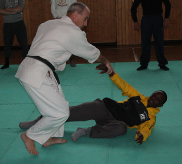 Dabei wird der Impuls des Angriffes des Anderen genutzt, um diesen aus dem Gleichgewicht zu bringen, so dass dieser fällt. Damit ist der Angriff erst einmal beendet.