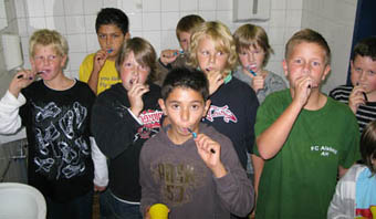 gleichnamigen Buches. Und diese beiden Übeltäter bekämpfen jetzt die neuen Fünftklässler der Melibokusschule immer an ihrem langen Schultag gleich nach dem Mittagessen. Auf dem Weg zum Zertifikat „Gesunde Schule“ beweist die Melibokusschule wieder einmal ihren innovativen Charakter und unterstützt die Kinder auf ihrem Weg zu einer gesunden Lebensweise. Dank der freundlichen Spende von 120 Zahnbechern, Zahnbürsten und Zahnpasta des Arbeitskreises Jugendzahnpflege konnte dieses Vorhaben nun in die Tat umgesetzt werden. In einer ansprechenden und praxisorientierten Form, ohne erhobenen Zeigefinger, wird den Schülern Mundgesundheit und -hygiene näher gebracht. Und so erfahren die fünften Klassen, dass die Aneignung eines zukunftsgerichteten Gesundheitsverhaltens erlebnisreich und anschaulich sein kann. Ein weiterer wichtiger Schritt zum Lernen mit Kopf, Herz und Hand für ein gesünderes und längeres Leben!