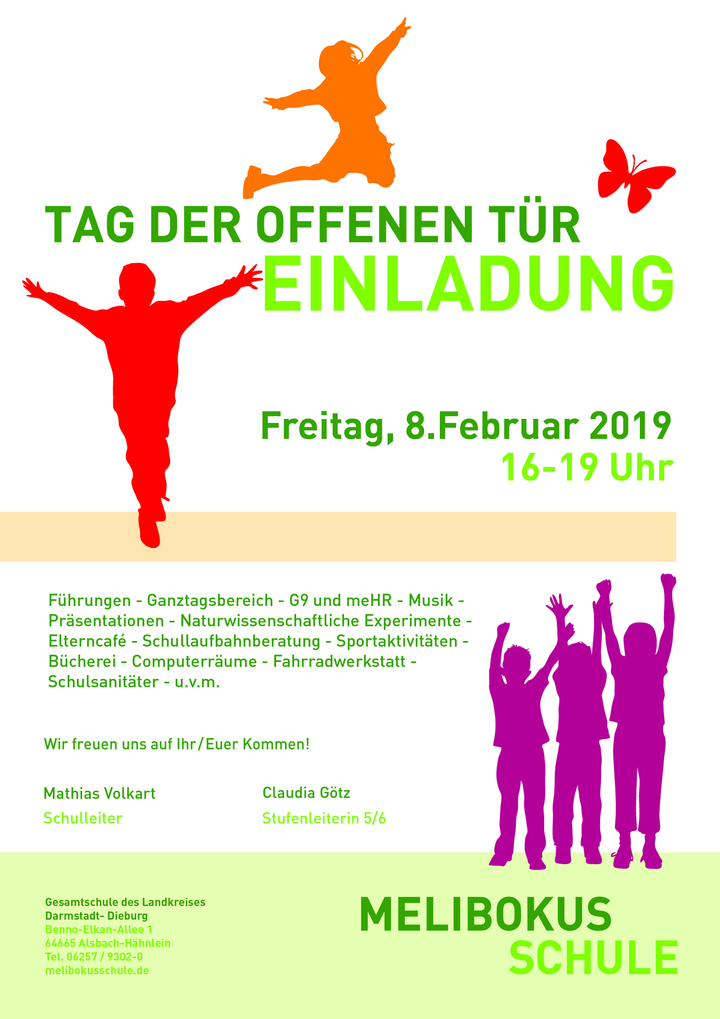 Die Melibokusschule Alsbach lädt zu ihrem diesjährigen Tag der offenen Tür am Freitag, den 08.02.2019 ein. Zwischen 16 und 19 Uhr können die Besucher sich selbst ein Bild vom Schulleben, dem Unterrichtsangebot und den vielfältigen Aktivitäten der kooperativen Gesamtschule machen. Interessierte Eltern und Kinder erhalten Informationen über die verschiedenen Bildungswege. Zudem führen Lehrkräfte und Schüler*innen durch die Räumlichkeiten, in denen u.a. die Ergebnisse der zuvor durchgeführten Schulprogrammtage präsentiert werden. Für das leibliche Wohl sorgt der Förderverein der Schule.