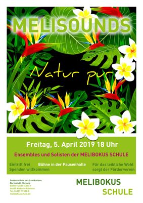Unter dem Motto „Natur pur“ begannen um 18.00 Uhr in der Sitzmulde der Melibokusschule Alsbach-Hähnlein die 14. Melisounds.Die Vorbereitungen des diesjährigen Schüler- und Lehrerkonzerts liefen in vielen Bereichen der Schule. Nach der Durchlaufprobe am Dienstag und der Generalprobe am Freitagvormittag, starteten die Schülerinnen und Schüler mit unserem Hausmeisterteam um Gerald Salf, bereits mittags, mit dem Einräumen der Sitzmulde. Die AG Schulgestaltung um Stefan Buss gestalteten die Bühne. Die Schülerinnen und Schüler haben wieder ganze Arbeit geleistet und ihre künstlerischen Fähigkeiten präsentiert. Das Thema „Natur pur“ war auch in der Dekoration erkennbar sein. Nicht nur das Banner, welches die Schülerinnen und Schüler selbst angefertigt haben, war mit seinen vielen Grüntönen ein Hingucker, auch der angefertigte Fuchs und das Eichhörnchen waren super gestaltet. Die Erde im Mittelpunkt begleitete alle Künstler und das Motto „Natur pur“ wurde immer wieder aufgegriffen.