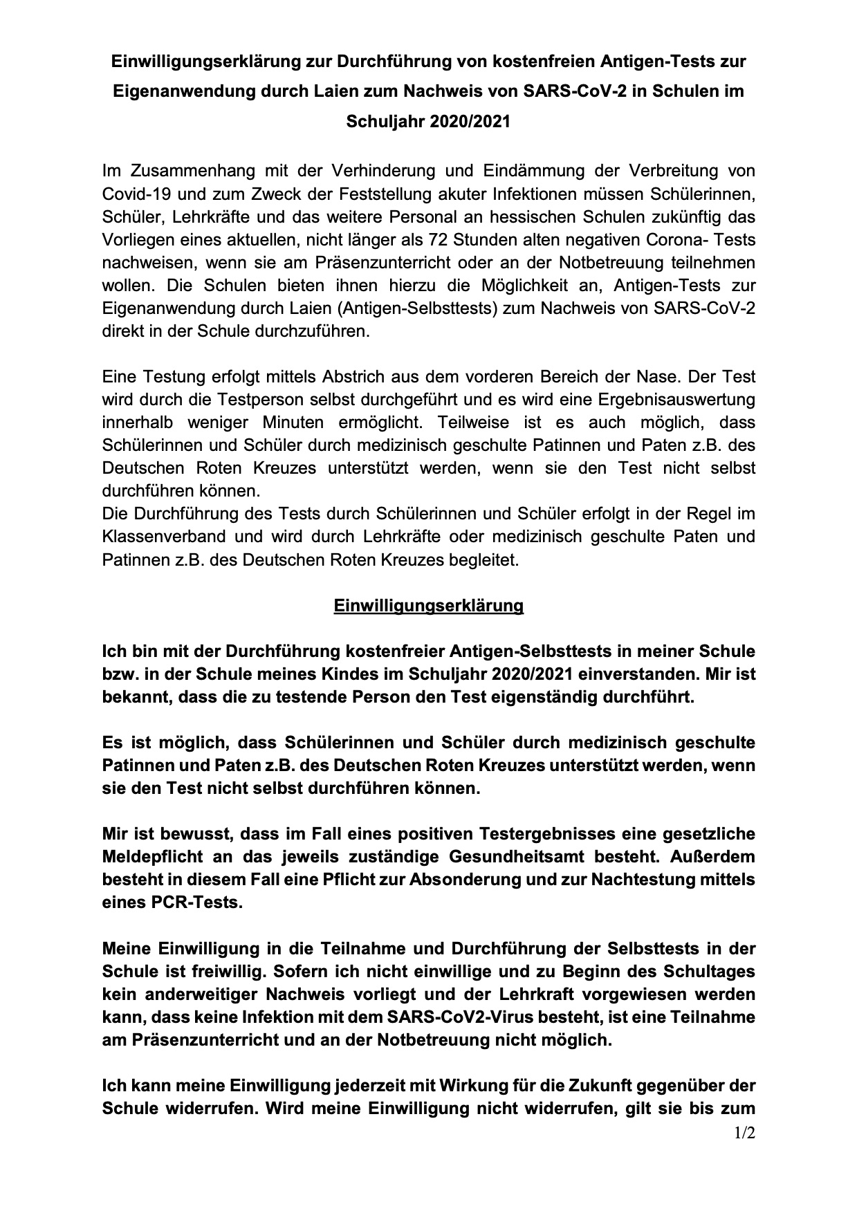 Einwilligungserklärung SelbsttestEinwilligungserklärung Selbsttest
