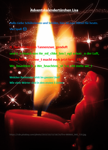 Das ist das Türchen für den 2. Dezember. Viel Spaß beim Rätseln ;)))