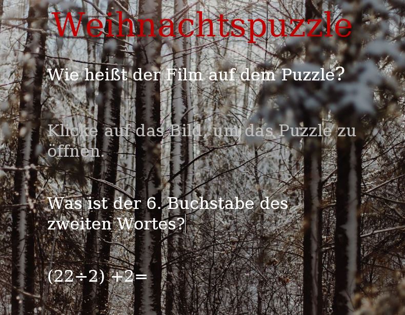 Das 8. Türchen ist offen. Löse das Rätsel, um die neuen Hinweise zu erhalten.