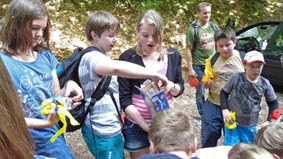 Am Anfang gab es für die Klasse zwei Stunden Theorie, und danach ging es ab in den Wald. Wir suchten ziemlich lange nach dem Finale, nach ungefähr einer viertel Stunde fanden wir es doch. Die Kinder durften sich vom Schatz etwas aussuchen, aber dafür mussten sie wieder etwas reinlegen. Am Ende gab es für jeden ein kleines Päckchen mit Süßigkeiten und eine Capri-Sonne.