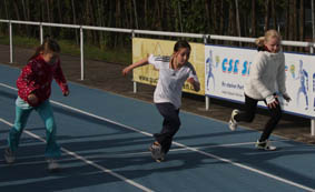 Die 5. und 6. Klassen traten auf der neuen Kunststoffbahn in einem 16x50m Staffellauf gegeneinander an.In einem spannenden Wettkampf, bei dem auch Wechselfehler entscheidend waren, kam es zu folgendem Ergebnis: