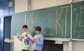 Im Schulprogramm steht, was die Ziele der Schule sind. Darunter sind auch Themen wie soziales Miteinander. Damit das sorgfältig hergestellte Schulprogramm nicht in irgendeiner Ecke in den Zimmern der Schüler liegt, wurde der Schulprogrammtag eingeführt.