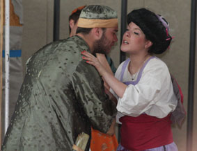 Auch im Jahr 2012 besuchte uns das WHITE HORSE THEATRE und führte für alle 5. und 6. Klässler das Stück THE WEASEL IN THE SACK auf. Dabei handelte es sich um ein englisches Märchen, das von dem armen, tapferen Mädchen Fred und ihren eitlen und tollpatschigen Brüdern Algernon und Marmaduke handelt, die in die Welt ziehen, um ihr Glück
