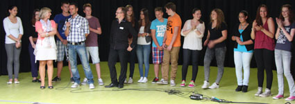 Am 19. August begann um 17 Uhr die Aufnahmefeier der neuen fünften Klassen. Zu Beginn begrüßte Frau Collatz alle anwesenden Eltern und Schüler. Danach kam die Chor-AG der Schule auf die Bühne und sang die Schulhymne und das Lied „Kinder“ den neuen Schülern und den Eltern vor.