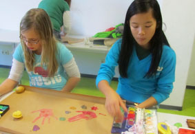 Da wir letztes Jahr so viel Spaß am Filzen hatten, haben wir uns entschlossen, dieses Jahr das Gleiche zu tun, doch dieses Mal wollten wir noch mehr machen. Es wurden nicht nur wundervolle Schälchen, sondern auch Schachbretter und Bilder gefi lzt. Dank Frau Unshelm und Frau Gneist bekommen wir immer mehr Übung! Außerdem haben unsere Eltern sich am Elternabend dafür entschieden,m mit Kartoffeln und Packpapier wunderschönes Geschenkpapier zu stempeln.