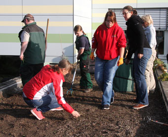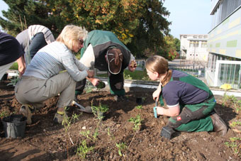 Eugen RothDie Dinge wachsen lassen möchte auch die Arbeitsgruppe „Schulhofgestaltung“, die Ende September in einer Pflanzaktion das Hochbeet am Eingangsbereich neu gestaltet hat.