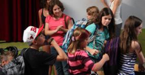 Am 19. August begann um 17 Uhr die Aufnahmefeier der neuen fünften Klassen. Zu Beginn begrüßte Frau Collatz alle anwesenden Eltern und Schüler. Danach kam die Chor-AG der Schule auf die Bühne und sang die Schulhymne und das Lied „Kinder“ den neuen Schülern und den Eltern vor. Nach der 10 minütigen Gesangsvorstellung kam die Akrobatik -AG auf die Bühne und zeigte viele schöne Kunststücke, die die Besucher sehr beeindruckten.