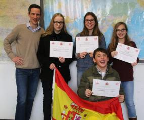 Zum ersten Mal bereiteten sich im Schuljahr 2015/16 fünf Schülerinnen und Schüler des achten Jahrgangs auf das offizielle spanische Sprachzertifikat DELE (Diploma de Español como Lengua Extranjera) für die Niveaustufe A1 vor. Seit Beginn des Schuljahres feilten wir gemeinsam jede Woche an den Kompetenzen Leseverstehen, Hörverstehen, schriftlicher Ausdruck und mündliche Präsentation.
