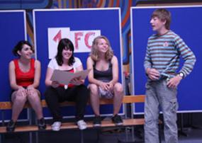 Amadeus, der Fußballneuling, spielt die anderen erfahrenen Jungs schwindlig, beim Bügeln werden sportliche Rekorde gebrochen, auf einer Parkband entfaltet sich die Begeisterung an coolen Karten statt an zarten Annäherungsversuchen ... Die Sketsche der Theatergruppe sorgten kurz vor Schulschluss für einen sehr entspannten Abend!