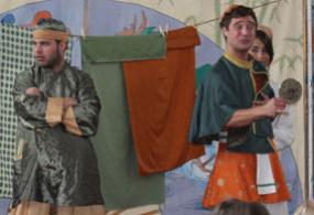 Am 16.4.2010 kam eine Schauspielergruppe des „forumtheaters“ an die Melibokusschule. Mit dem bekannten Stück „Der Zerbrochene Krug“ von Heinrich von Kleist aus dem Jahr 1806 zeigte sie ein Lustspiel, das entsprechend meiner Nachfragen bei allen Zuschauern gut ankam. Als Schauplatz diesen Stücks stellen wir uns zunächst das Schlafzimmer eines älteren, leicht korpulenten Richters vor, das Weitere spielt sich in einem Gerichtssaal ab.