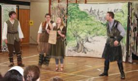 On June 15th we could yet again welcome the WhiteHorse Theatre at our school. This time our „little ones“ from years 5 and 6 enjoyed the play "Maid Marian" by Peter Griffith. For those who don't know: Maid Marian and her boyfriend Robin Hood live in Sherwood Forest. Together with their gang, the Merry Men, they help the poor by robbing the rich. But the horrible Sheriff of Nottingham is trying to catch them.
