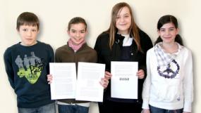 Katharina Stühn aus der Klasse 6cG, die Schulsiegerin im Vorlesewettbewerb 2013/14, gewinnt auch im Kreisentscheid der Gruppe Darmstadt- Dieburg/West. Die besten Vorleser des Land- kreises trafen sich am 26. Februar zum Kreisentscheid im neuen Kreishaus in Kranichstein. Katharina hatte sich für das Buch „Arthur und die vergessenen Bücher“ von Gerd Ruebenstrunk entschieden. Darin darf ein geheimnisvolles ‚Buch der Antworten‘